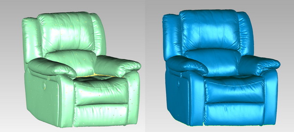 整個過程快速便捷地獲取皮沙發的三維數據,將沙發真實還原,展現在PC端、移動端,使顧家家居的客戶能更方便、更全面地在線上就能了解其產品細節,為顧家家居實現AR購物技術上邁出了第一步。更能迎合科技潮流,用三維展示技術讓消費者更加全面得了解產品特點和細節,同時通過三維展示技術提高家具的宣傳質量和效果。而三維展示必不可少的前提就是要有三維數據。傳統的方法是通過人工三維建模獲得與產品外觀相近的三維模型。這種方法不僅耗時,而且模型的真實度也不高,特別是一些細節,靠人工建模雕刻很難復現。文程數碼科技能夠提供一種更加方便快捷,模型的細節也更加真實的獲取三維模型的方法。不僅提高了獲取三維模型的效率,還提高三維模型的質量,通過后期處理獲得清晰逼真的三維模型,完美解決家居的問題。